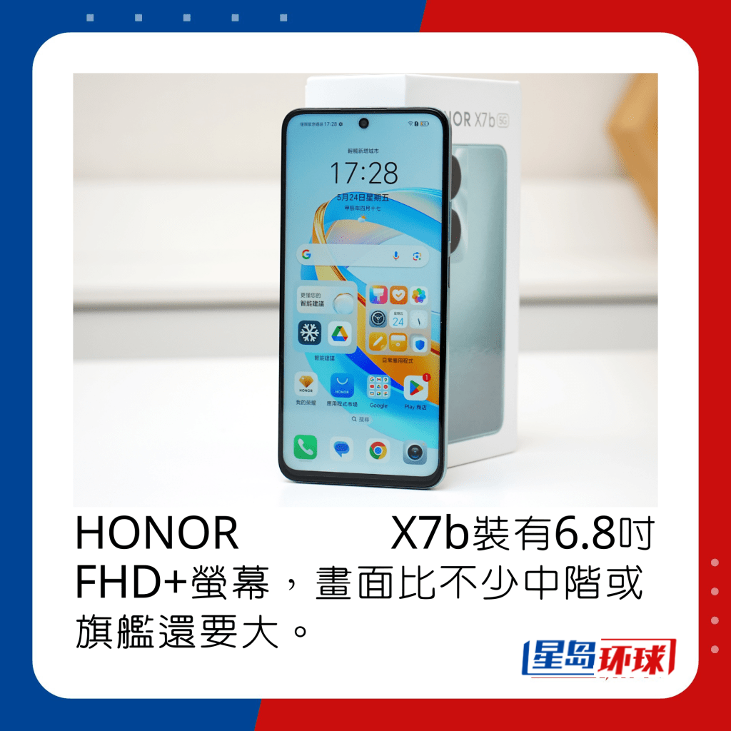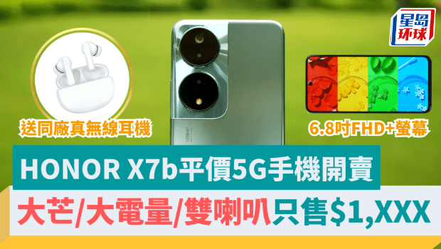 市场上不乏机价两千元有找的入门5G手机,只是大部分将货就价,功能规格有欠齐全,如时至今日还是单喇叭,看剧连立体声也没有。刚推出的HONOR X7b则交足功课,既有一对立体声喇叭匹配6.8英寸大芒,影相可以直出1亿像素,最标青是电量达6,000mAh,续航力非常出色,5月31日或之入手更会送HONOR Choice X5真无线耳机,感觉更划算。