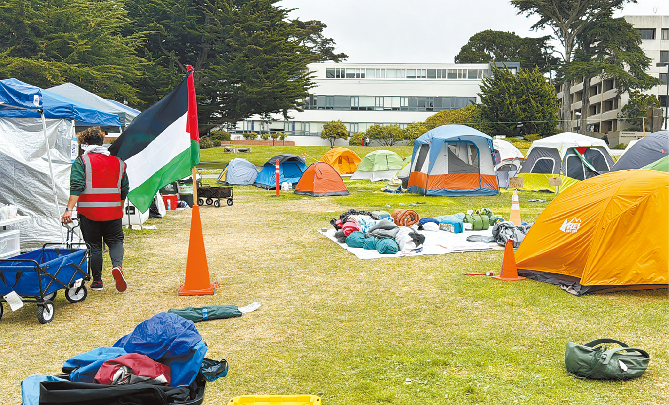 ▲和全国其他大学一样,加州多所大学爆发挺巴人抗议和校园扎营等行动,不少参与行动的师生面对不同程度的惩处。图为旧金山州大早前的营地。本报资料图片,记者苏婕雅摄