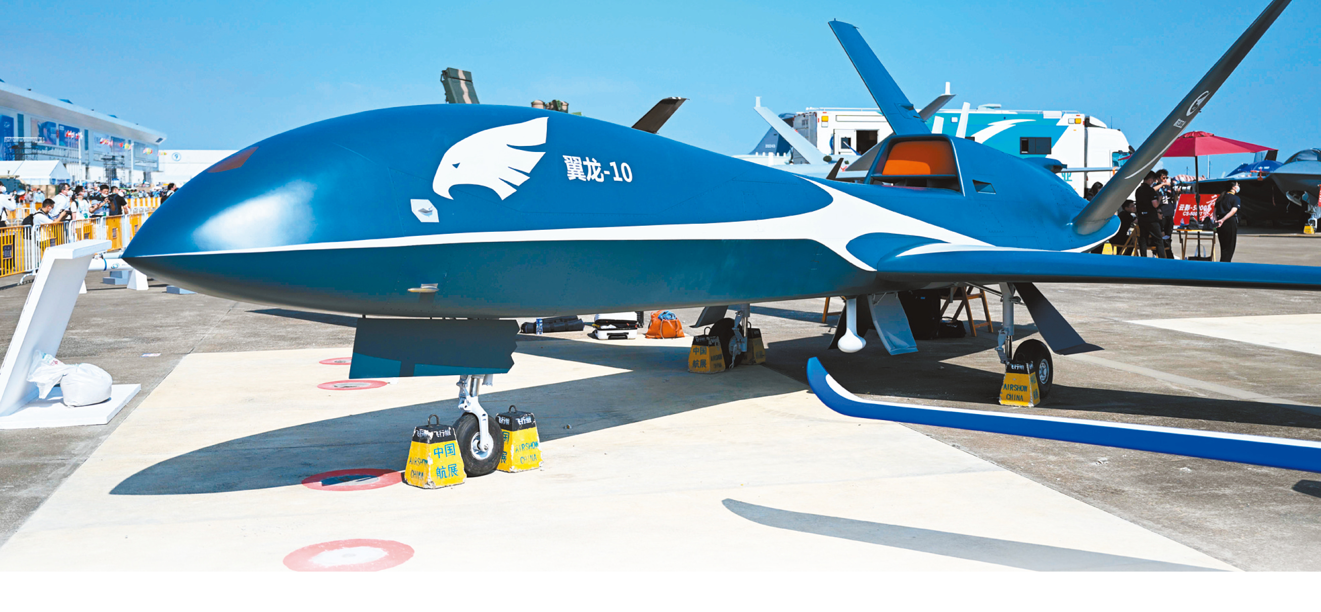 ▲“WL-10”疑似“翼龙-10”无人机的升级版。图为中国航展上展出的翼龙-10B无人机。新华社资料图片