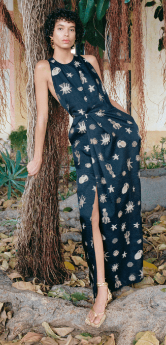 ▲H&M StudioResort别注系列入膊连身裙/$1,490,采用打摺细节营造垂坠效果,配以闪亮织线神话图案。