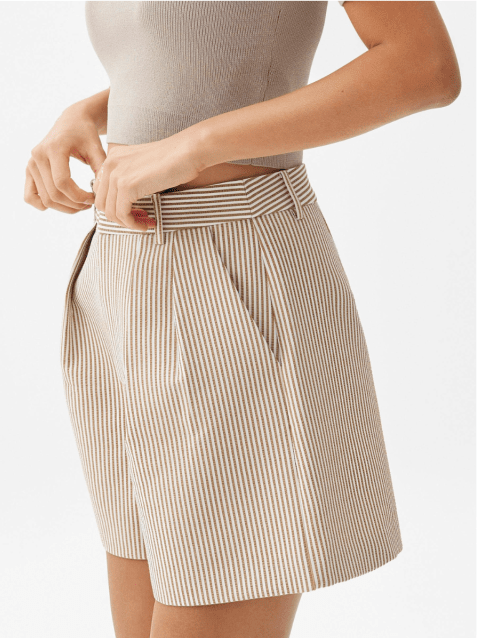 ▲Love, Bonito打褶西装短裤/$319,拼色条纹图案。