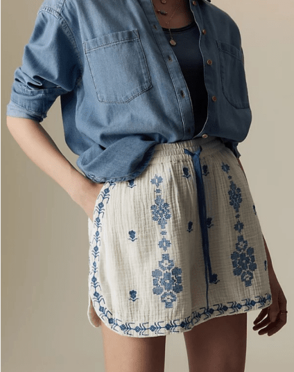 ▲Marks & Spencer双色纯棉刺绣短裤/$449,采用束绳弹性运动裤头。