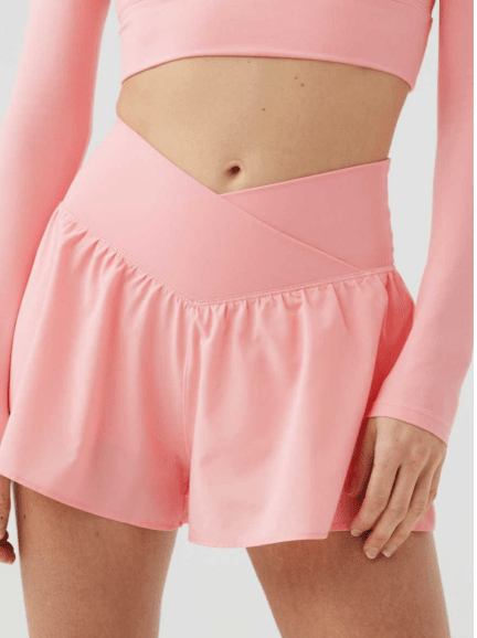 ▲OFFLINE ByAerie Real Me V字透气飘逸短裤/$590,交叠式裤腰,V字缝线贴合身型;又内置防走光RealMe安全裤及内袋。