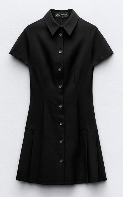 ▲Zara黑色Shirt Dress/$399,採用恤衫款式设,配搭百褶裙摆细节。