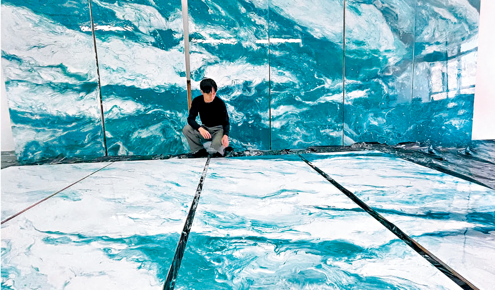 树脂胶(Resin)本是一种建筑设计的素材,早已在欧美流行,不少酒店、高级食肆及商铺都可见采用树脂胶制作或大或小的装饰壁画、家具及家品摆设等项目。由于树脂胶混合不同色彩的颜料后,通过其流质状态,可幻变出带透明质感如琉璃,且图案独一无二的亮丽画面,故亦广泛用于艺术创作之中。