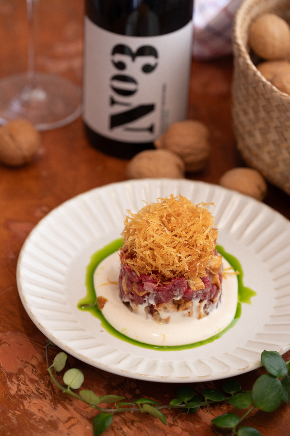 这家新西餐厅的必吃西菜包括和牛他他、炸馅饼及手工意粉。意粉的配搭有别于一般的做法,部分融合了来自瑞士的家乡食材。象是牛腱肉酱麻花意粉,肉酱的烹法就是瑞士人熬煮肉汁的方法。炸馅饼亦是Matthew身为瑞士人的拿手小吃。原个炸至金黄色的大圆球,外层脆卜卜,里面是融化了的格吕耶尔芝士,邪恶但极为美味。