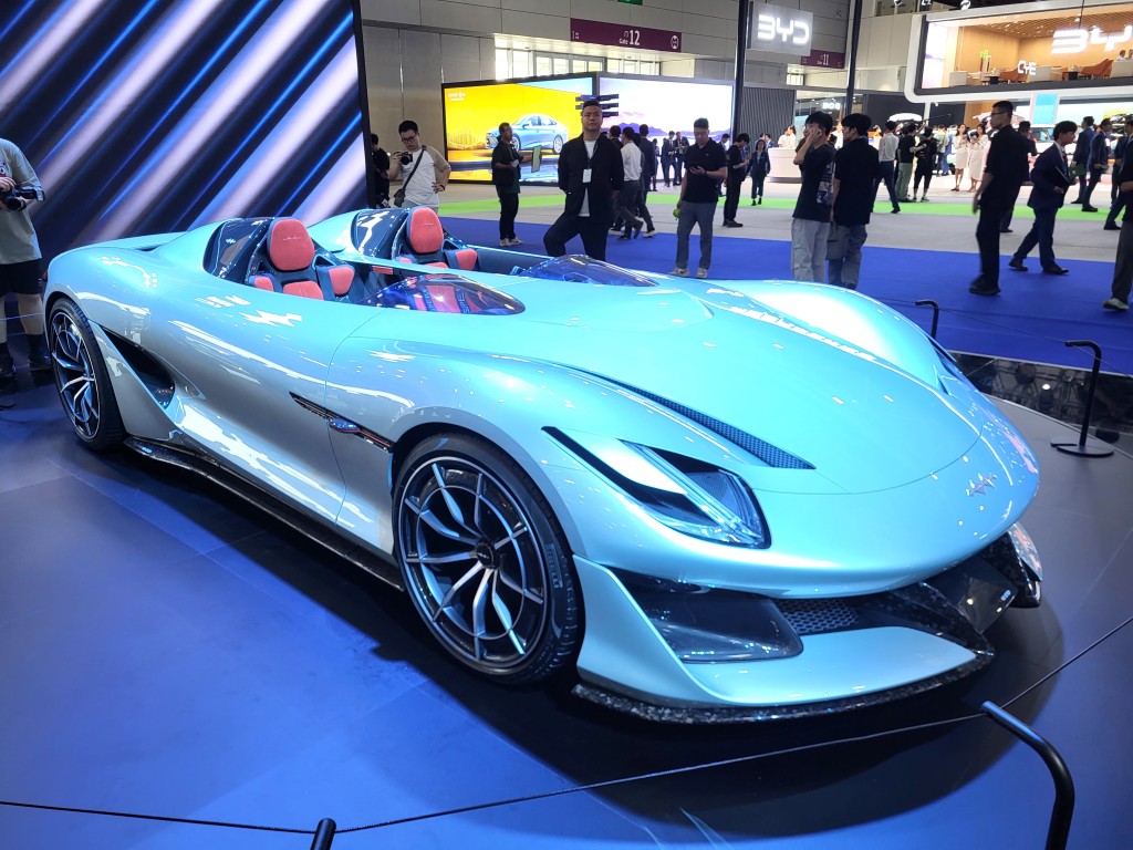 ▲深圳比亚迪BYD占据整个1号展馆,展出方程豹Super 9概念超跑。