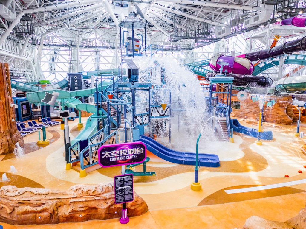 16个以太空为主题的游乐设施,包括结合刺激攀升及冲刺下水的极速水上过山车、全城唯一室内冲浪模拟器,以及7个滑水道设施、2个造浪池、一个横跨室内室外的“天际星空池”、246米星空激流之旅、以及3.7米深潜水池,同时挑战平台跳水及攀岩历险的“天崖海角”。
