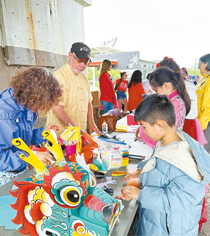 ▲兴趣浓浓的小朋友围在摊位前。 梁敏育摄