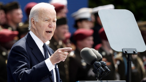 拜登在诺曼底美国公墓举行的仪式上说:“向恶霸投降,向独裁者低头,这简直不可想象。如果我们这样做,就意味着我们忘记了在这些神圣的海滩上发生的一切。”
