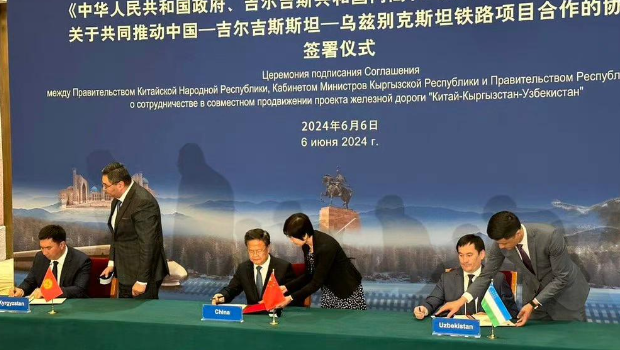 6月6日,中国-吉尔吉斯-乌兹别克铁路项目三国政府间协定签字仪式在北京举行,国家主席习近平、吉尔吉斯总统扎帕罗夫、乌兹别克总统米尔济约耶夫视频祝贺协定签署。