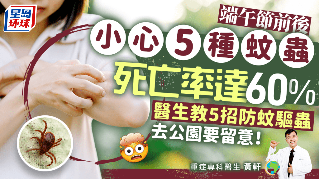 夏天是蚊虫活跃的季节,端午时节更要小心! 有重症科医生指,端午节过后蚊虫尤其活跃,容易被5种蚊虫咬伤,其中1种更可致命,死亡率达60%! 行山、去郊外、去公园时要特别小心,慎防被咬伤,医生教5种方法防蚊驱虫。