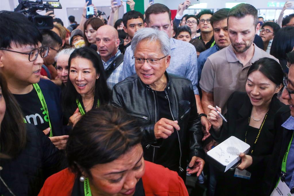 ▲台北国际电脑展(Computex)日前登场,“AI教父”的英伟达创办人黄仁勋(中)现身会场逛展,吸引民众争相抢拍及签名。中时新闻网