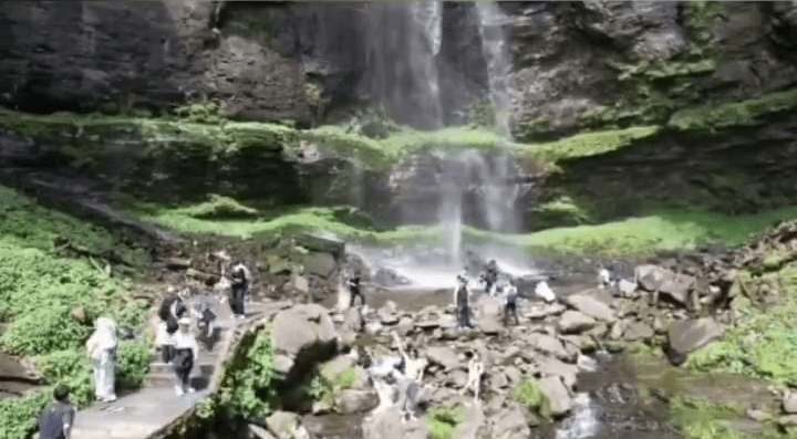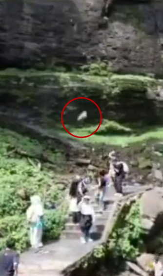 网传影片可见,在一处瀑布景点下,有不少游客正在拍照。突然,从高处掉落的一块石头击中一名背着包的长发游客,将其击倒在地。其身边的多位游客被这一幕吓到惊慌失措,原本在瀑布下观景和拍照的游客赶紧离开了现场,一位男游客查看了被击中的游客情况,并拿出电话疑似报警。