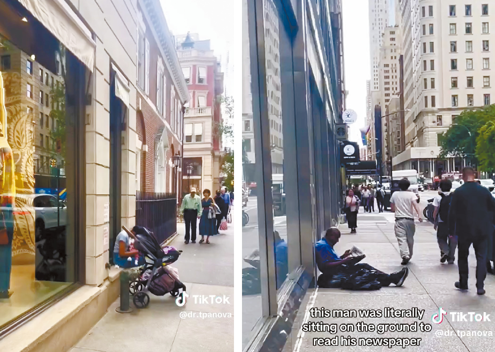 ▲早前有纽约网红拍下纽约市街头游民情况严重。 影片截图