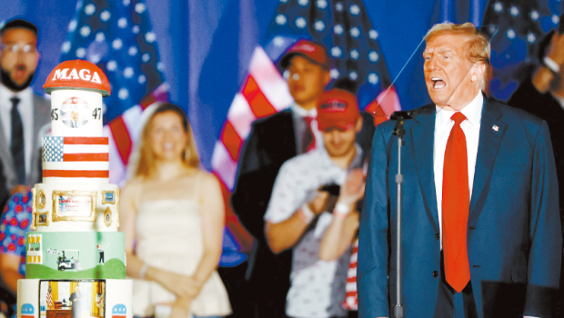 ▲前总统特朗普在佛州庆祝78岁生日,发言时极力挖苦现任总统拜登年迈而且心智衰退,无法连任总统。 路透社