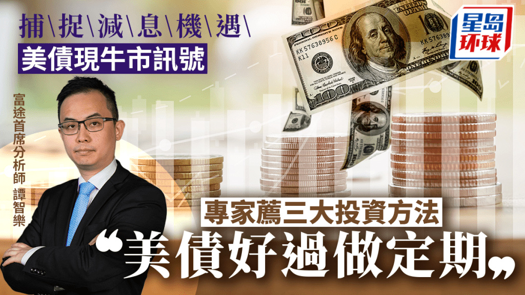 美国减息步伐市场看法分歧,但共识是今年至少减一次,此时债市已悄悄步入牛市,往往是部署债券好时机。被视为拥有“无风险利率”的美国国债,是投资者追捧的稳定高息工具之一,目前只要及早买入美债,锁定高息,便可享受未来息口下行时债价上升,达到“财息兼收”。专家直言,从低风险投资角度而言,买美债好过做定存,特别是长债,未来回报将十分可观,并提出两大原因,建议投资者与其直接买债,不如投资美债相关基金或ETF。