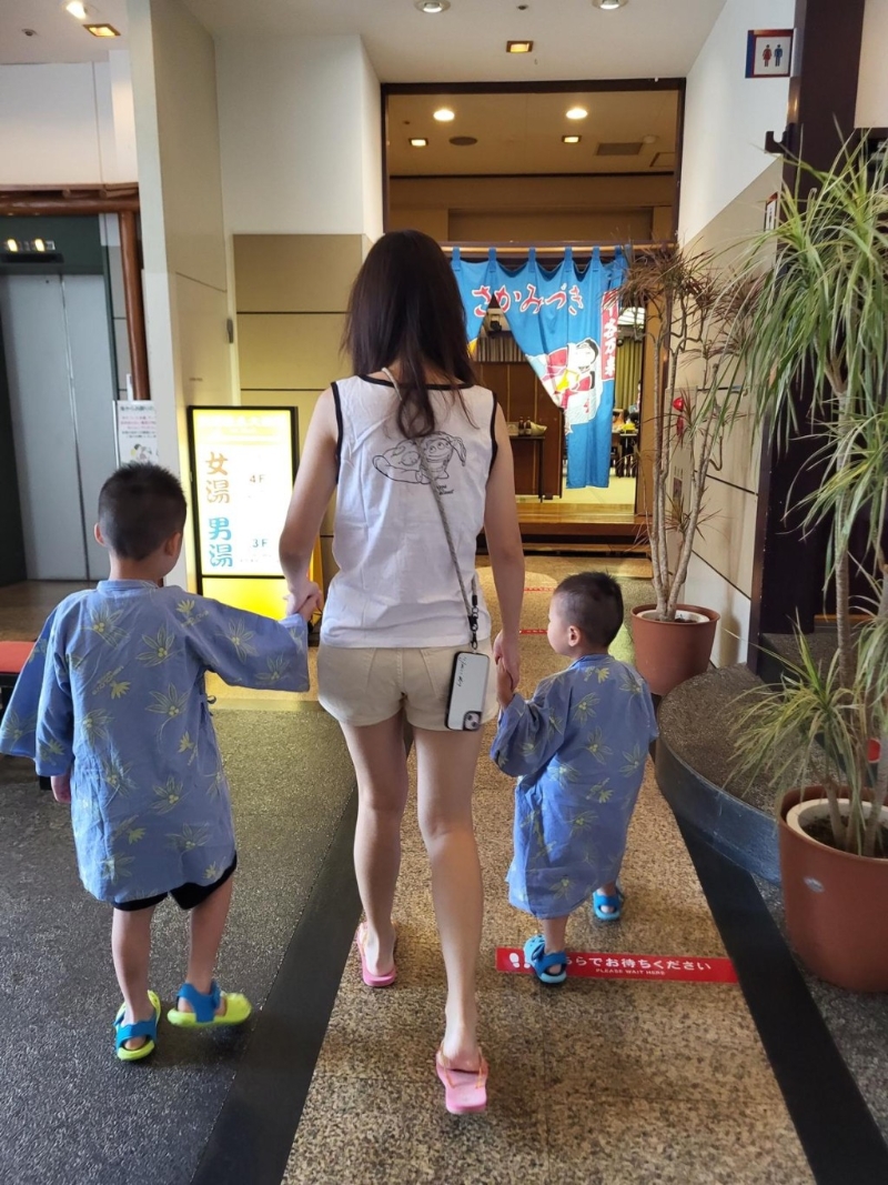 ▲不论去到哪里,儿子们都喜欢拖着欣欣的手。(受访者提供)