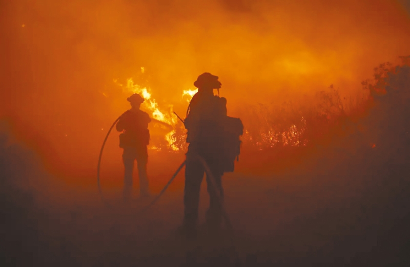 ▲消防员周日在戈尔曼附近遏制迅速蔓延的波斯特野火。火灾已促使整个地区的人员疏散。 美联社