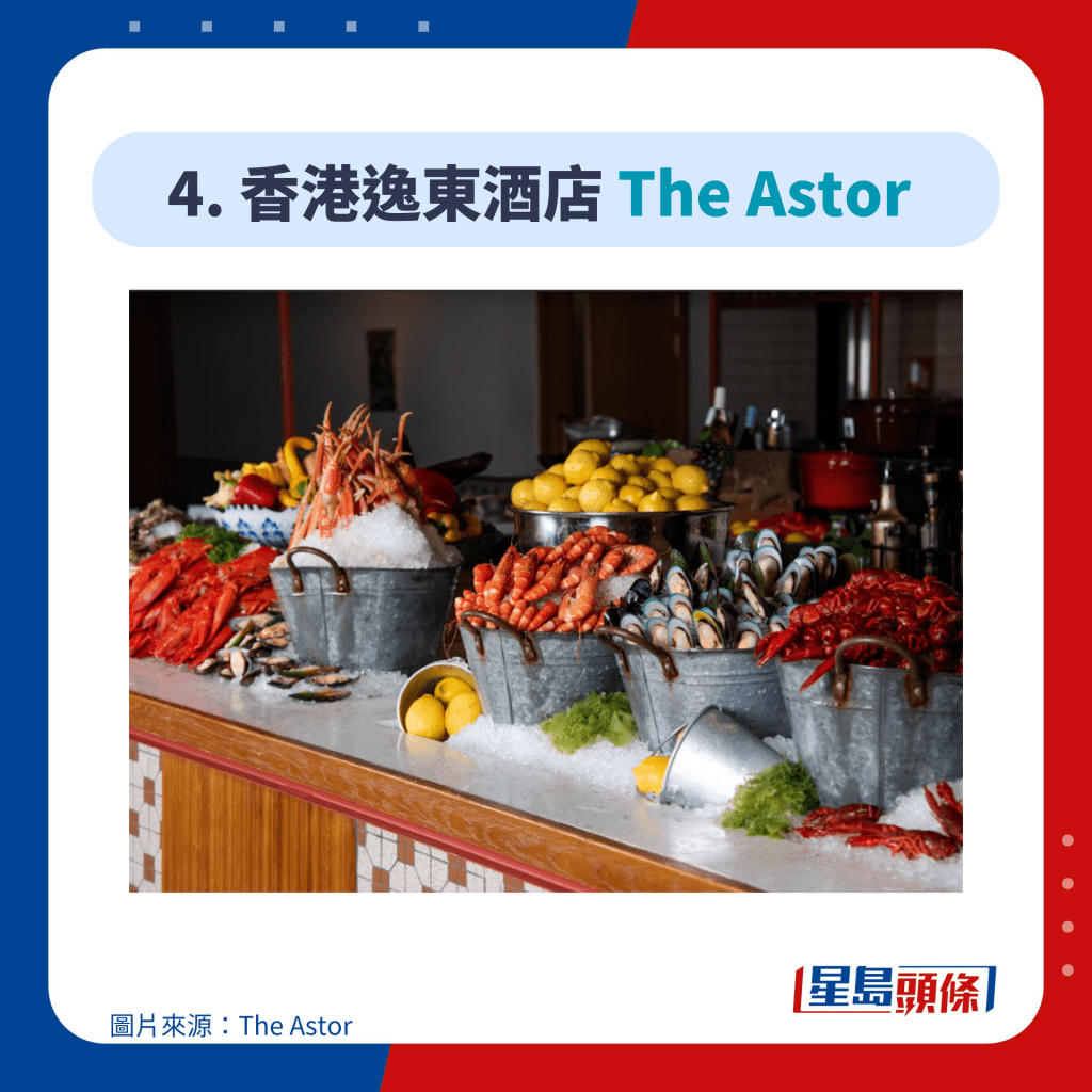 逸东酒店The Astor设有7个美食专区,即席烹调多种国际化美馔,The Astor更于5月6日起呈献全新“瀛鲜有得食”自助餐,以一系列日韩人气菜式作主打,包括蒲烧鳗鱼、牛舌、韩式部队锅、富士山苹果芝士蛋糕等,客人可在The Astor享尽日本及韩国优质美食。