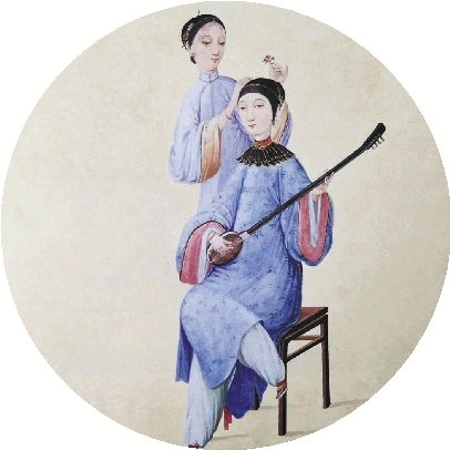 ▲这幅清代画作反映了歌女在弹唱的场景。