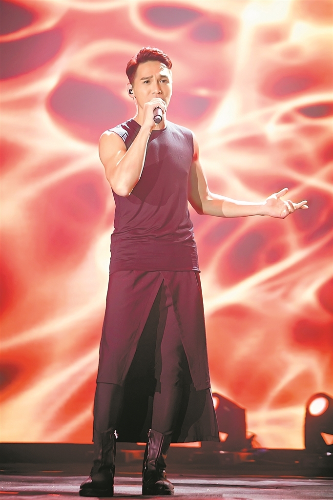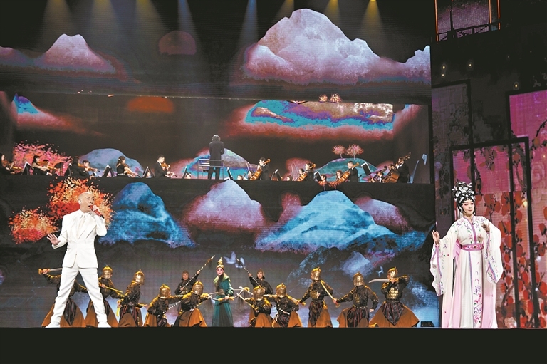 ▲歌手张卫健与梅花奖获得者曾小敏一起演唱《侠骨柔情》。