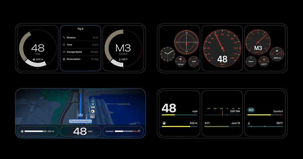 从Apple最新发布的片段所见,新一代CarPlay不只支援多屏幕串联,无论是数码仪表板、中控台或客座屏幕,都可以全面接管,而且提供大量订制选项,由介面到功能,统统可根据车款而改变,感觉更接近独立的车载娱乐系统。除了数码仪表款式转换,连字型粗幼、指针设计及公制单位亦可改动。