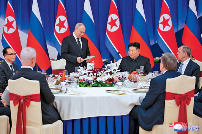 俄罗斯总统普京周三访问平壤时和朝鲜领袖金正恩签署《全面战略伙伴关系条约》,含一项共同防御条款,引发韩国政府昨日强烈谴责,扬言将重新考虑向乌克兰提供武器的方案。 中国学者指出,俄朝建立准军事同盟关系,跨出很大一步,美日韩在另一方向上加强协同,东北亚两个阵营对抗格局明显加剧。