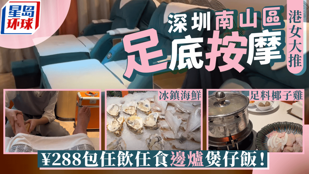不少港人都喜爱假日北上消费,饮饮食食加按摩享受是热门消闲活动。除了数间规模较大的按摩场所之外,港人亦开始陆续发掘各区新蒲点。在深圳南山区,就有一所按摩店隐身在酒店之内,只需288元则可享受按摩兼大叹任饮任食火锅及煲仔饭,有港客实试后极力推荐!