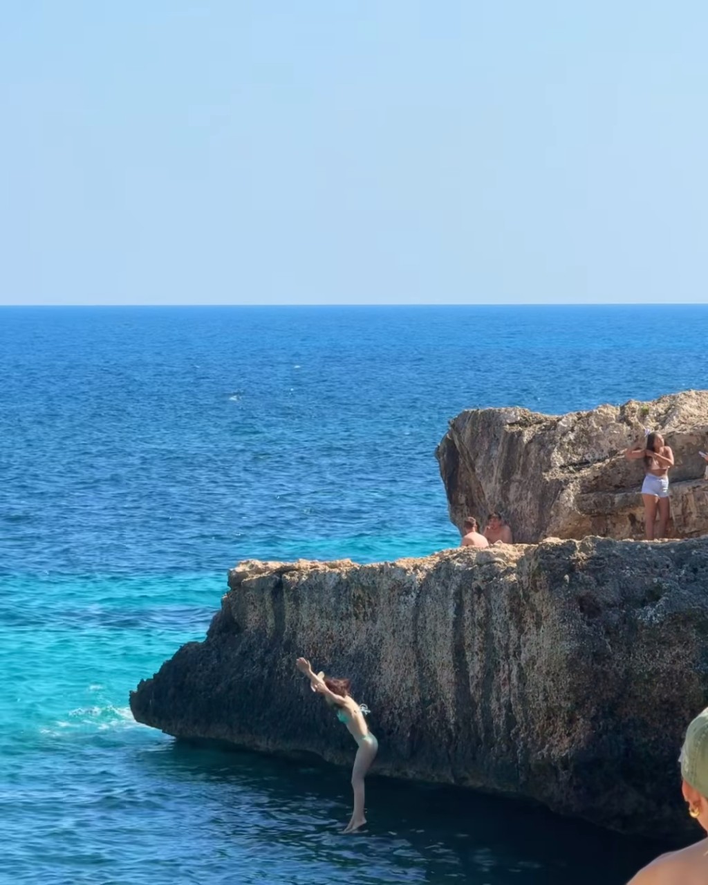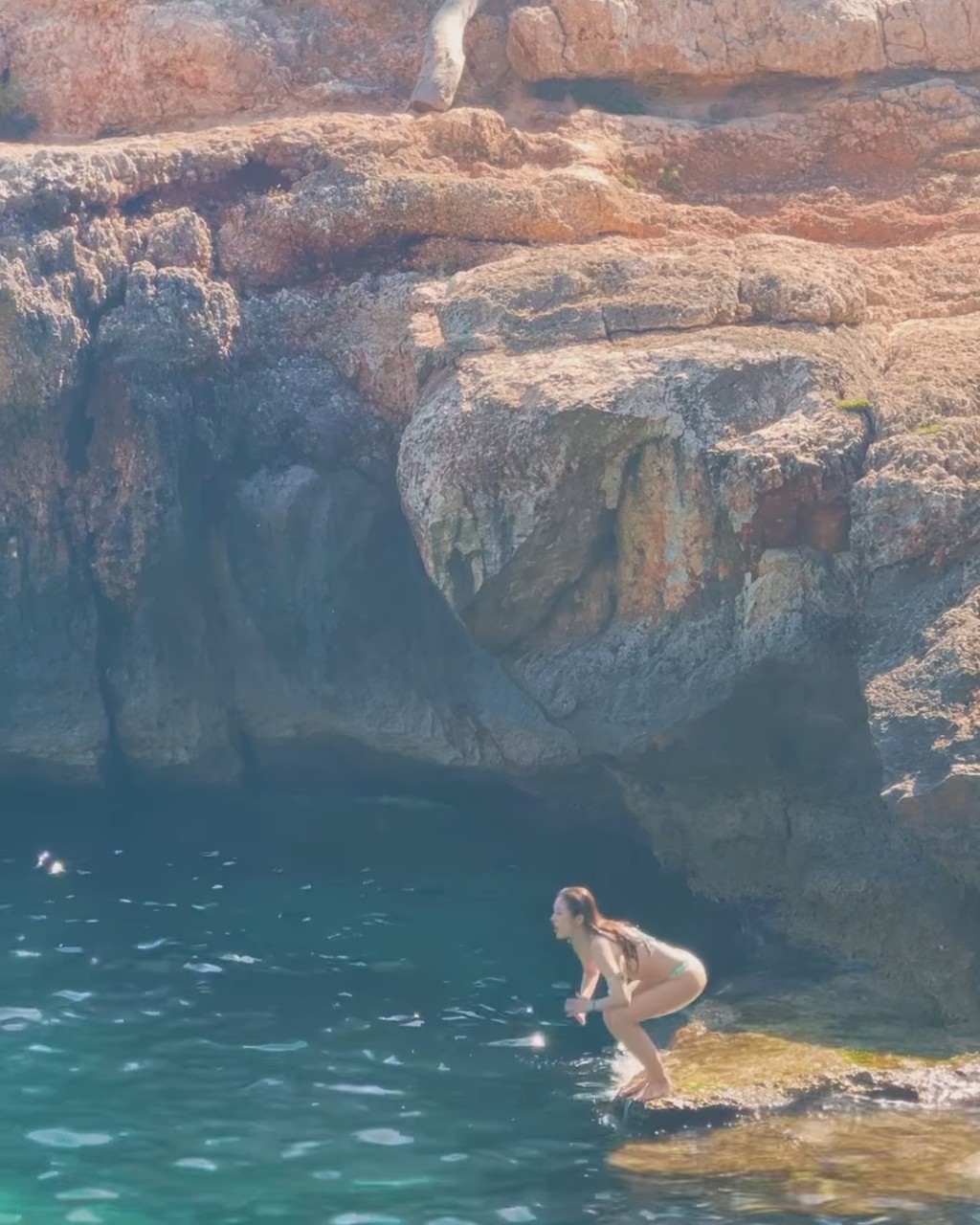 蔡嘉欣今日亦有在IG贴出泳衣照及跳崖影片,她写道:“Mallorca Crystal Clear 果冻海,真的绝美,游了几圈泳,跳了个崖,拍了几圈航拍,真想在这个海洋待更久!” 从相片上看到身穿绿色两件头泳衣的蔡嘉欣在崖边拍照,影片则看到蔡嘉欣跳崖,她准备跳崖时,先抽高三角泳裤,然后一跃而下,跳入大海! 网民也替她汗颜,留言指她“好大胆”,“挞水皇后”、“Kayan好靓好sexy,美人美景,你跳水跳得好好睇,你正侧面好靓。”