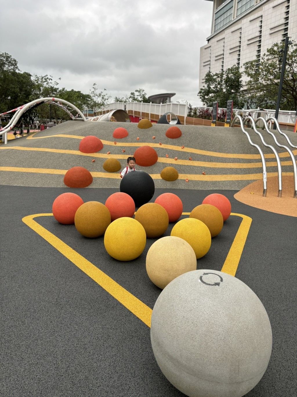 ▲公园内有很多打卡位,这些球体让你想起桌球还是保龄球?(图片来源:《亲子王》)