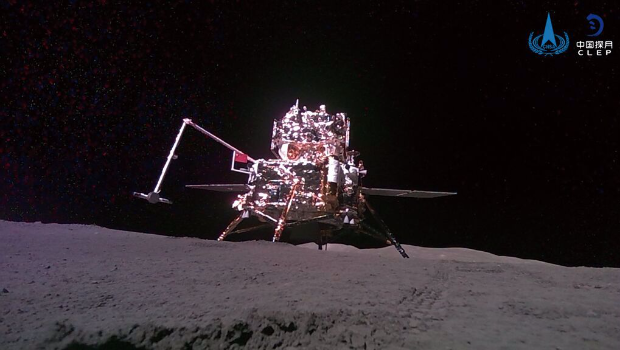 ▲嫦娥六号携带的“移动相机”,自主移动并成功拍摄、回传著陆器和上昇器合影。 (中新社)