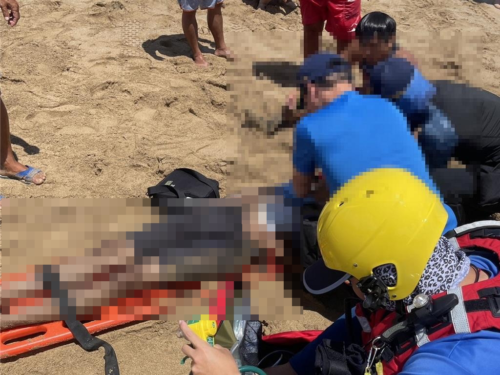 昨日下午1时11分,海巡人员通报,恒春镇船帆石友1名游客疑似戏水失踪,消防局出动垦丁2车4人1艇,下午1时25分垦丁分队回报到场时,溺者已由民间人士拉至岸边急救,实施CPR,但已无生命征象,救护人员紧急将男子送往恒春旅游医院急救。