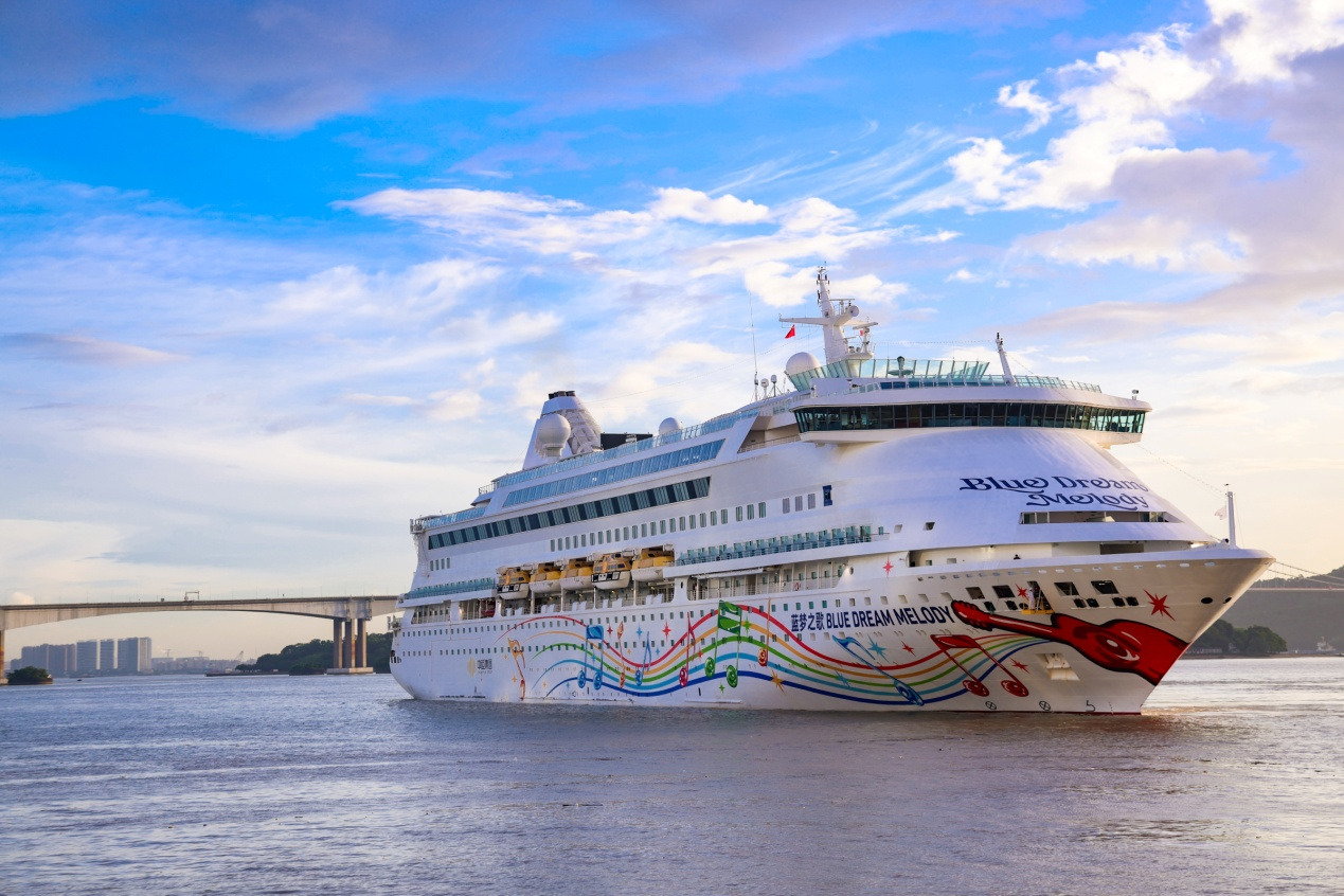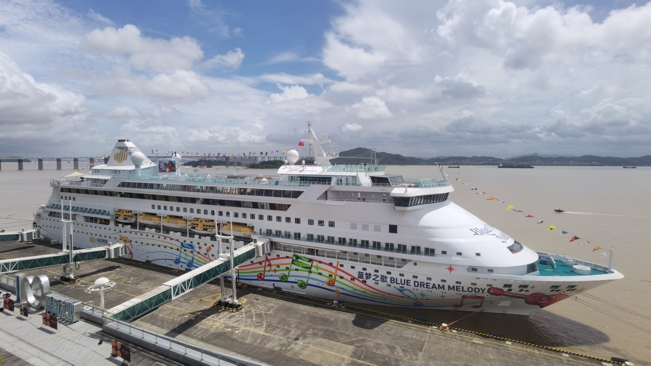 ▲停泊在广州南沙邮轮码头母港等待启航的蓝梦之歌号邮轮。