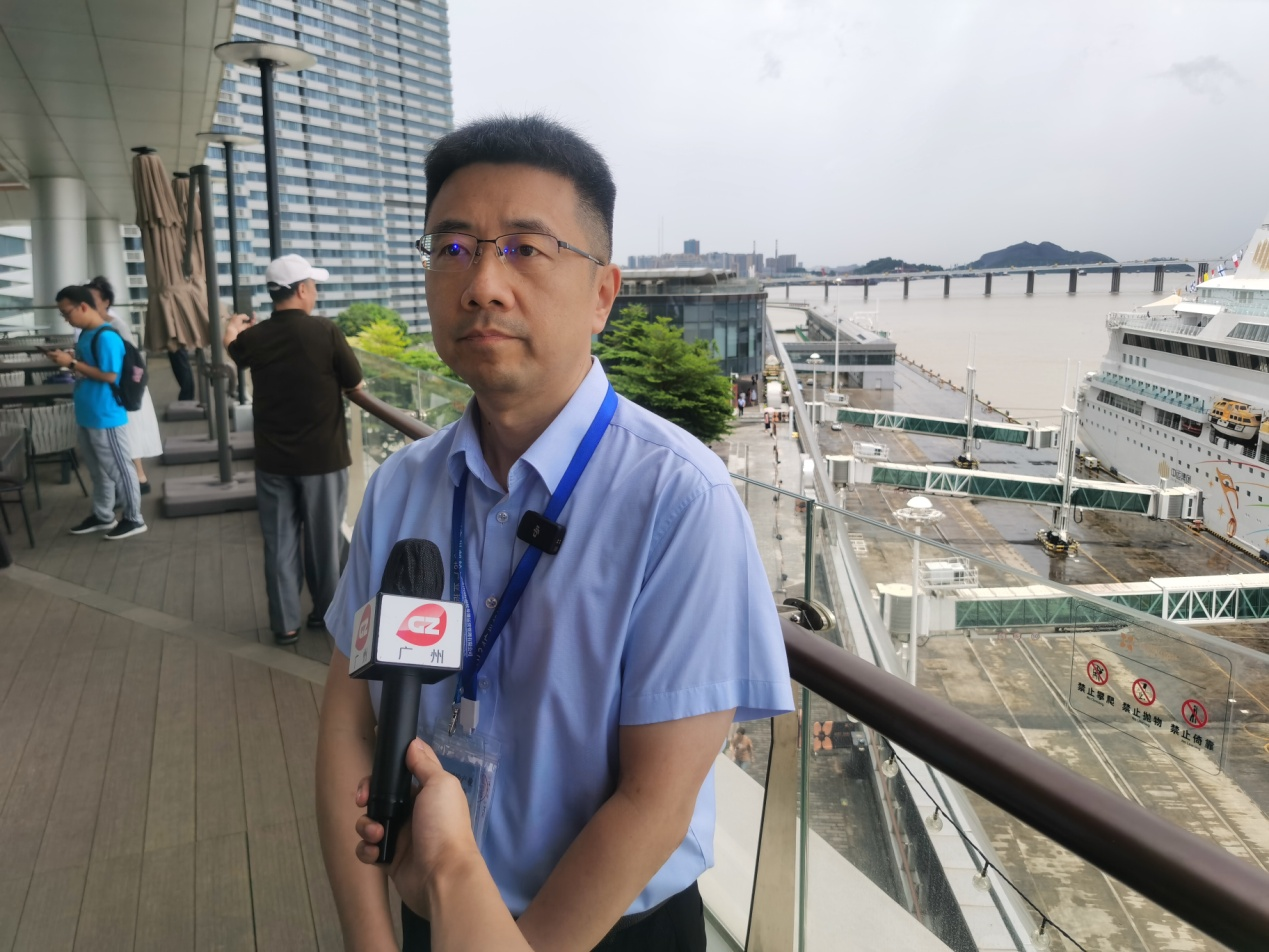 ▲广州南沙国际邮轮母港运营管理有限公司副总经理郑一峰接受访问。