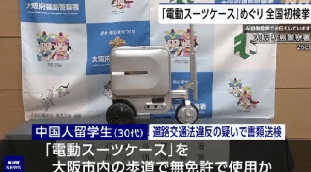 近年电动行李箱日渐普及,不少人外游时累了便“骑”在上面继续前行,但小心触犯当地法律,一名住在日本大阪的中国籍女子,就因此遭到警方检控,涉嫌违反交通安全法(无牌驾驶)。这是日本首次涉及电动行李箱的打击行动。