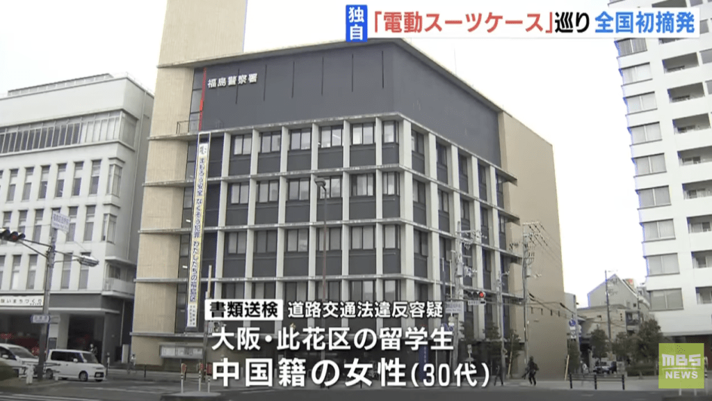 日本警方周三(26日)高调向传媒交代案情,呼吁其他人士不要重蹈女子覆辙,违犯法律。据报,该名30多岁中国女子是名留学生,住在大阪此花区,她于今年3月在中国的网购平台上购买了一个电动行李箱,之后在福岛区行人道上“骑乘”而行,被巡逻警员拦下。