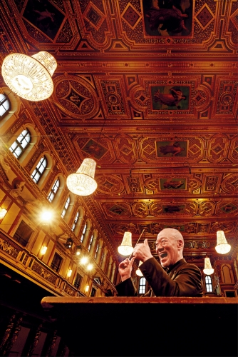 ▲久石让站在金色大厅的指挥席上,带领维也纳交响乐团演奏他的第二交响曲。