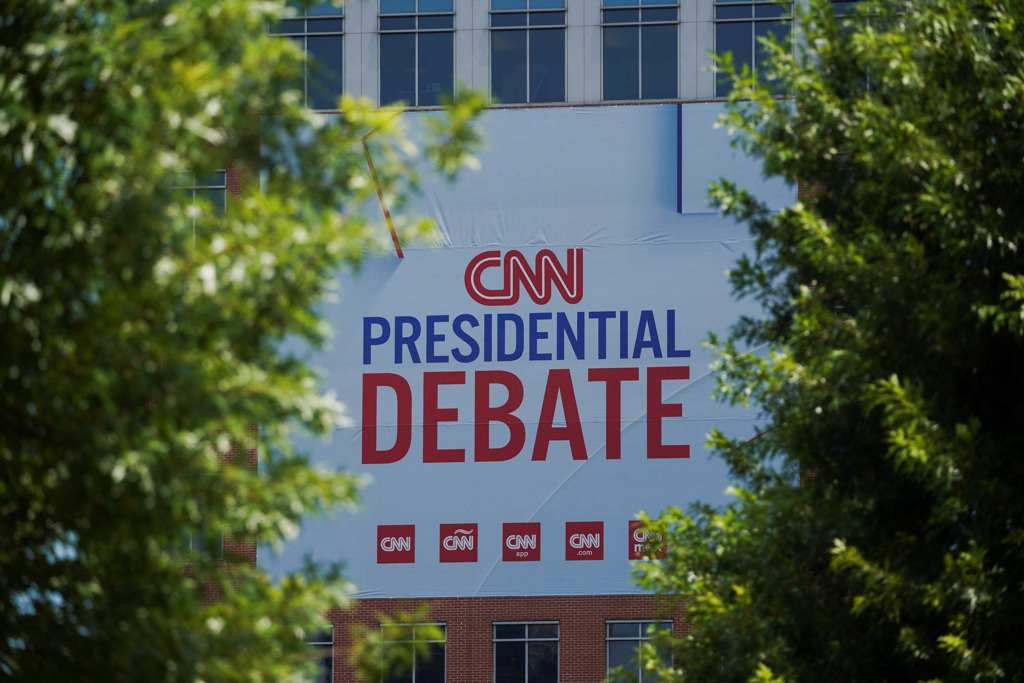 ▲美国2024总统大选首场电视辩论会28日登场,由CNN主办,直播摄影棚不开放观众入场。路透社