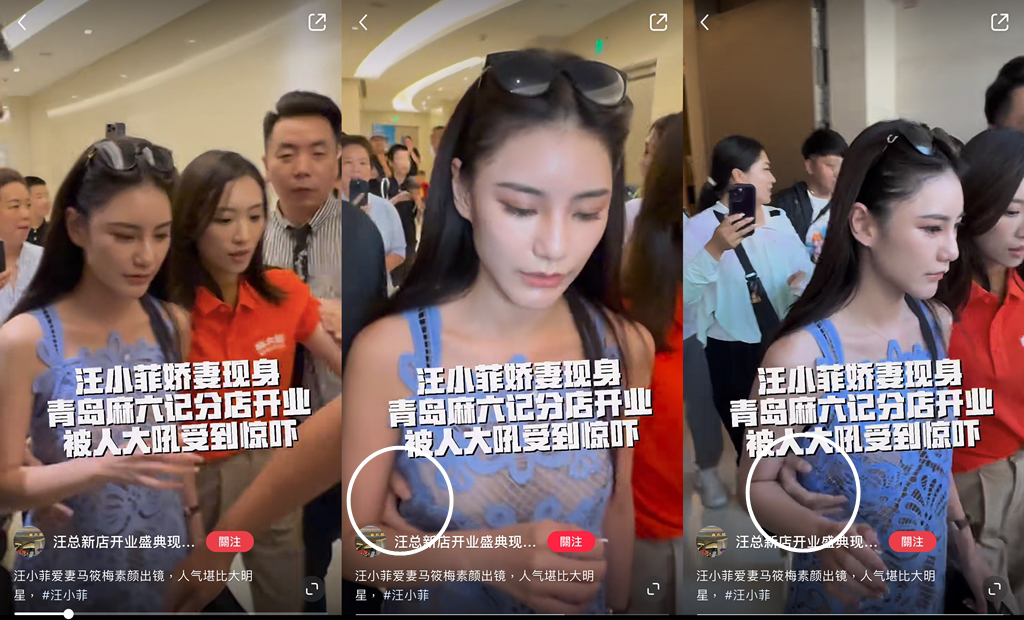 大S前夫汪小菲今年5月与马筱梅(Mandy)领证结婚,两人婚后不仅一起拜见了张兰,Mandy更夫唱妇随陪汪小菲四处跑冲刺事业。近日汪小菲的餐厅在青岛开幕,Mandy现身引来大批民众簇拥,让她一度吓到尖叫,而护送她的女助理似乎不小心手碰到她胸部,也让Mandy表情有点尴尬。