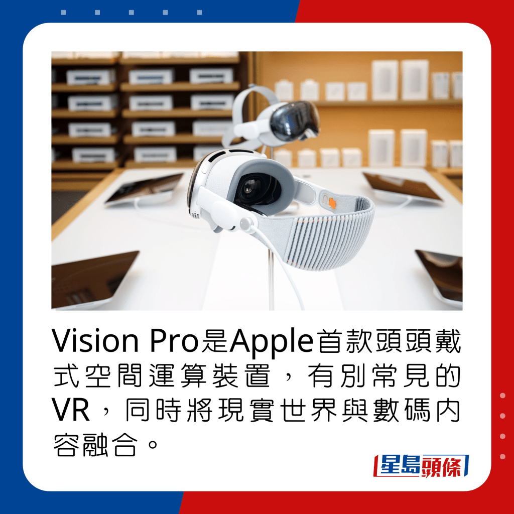 ▲Vision Pro是Apple首款头头戴式空间运算装置,有别常见的VR,同时将现实世界与数码内容融合。