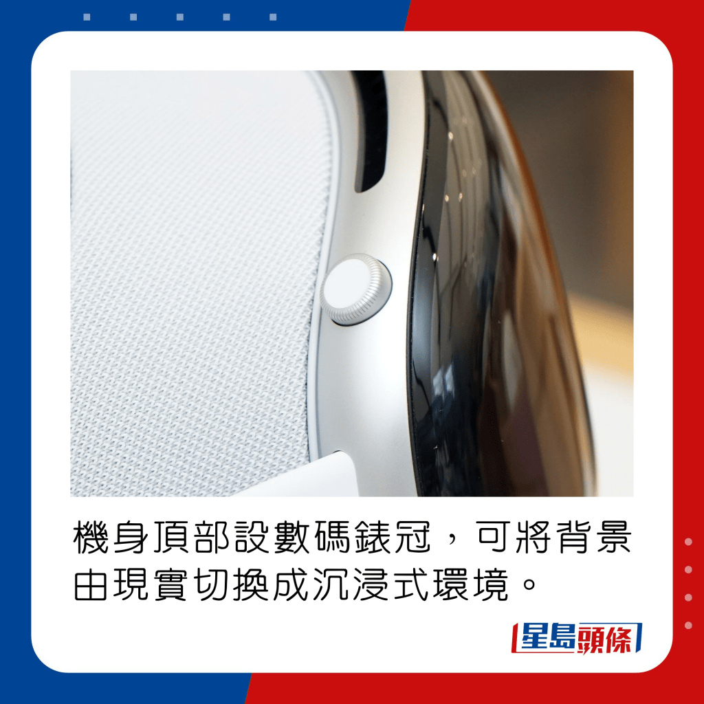▲机身顶部设数码表冠,可将背景由现实切换成沉浸式环境。