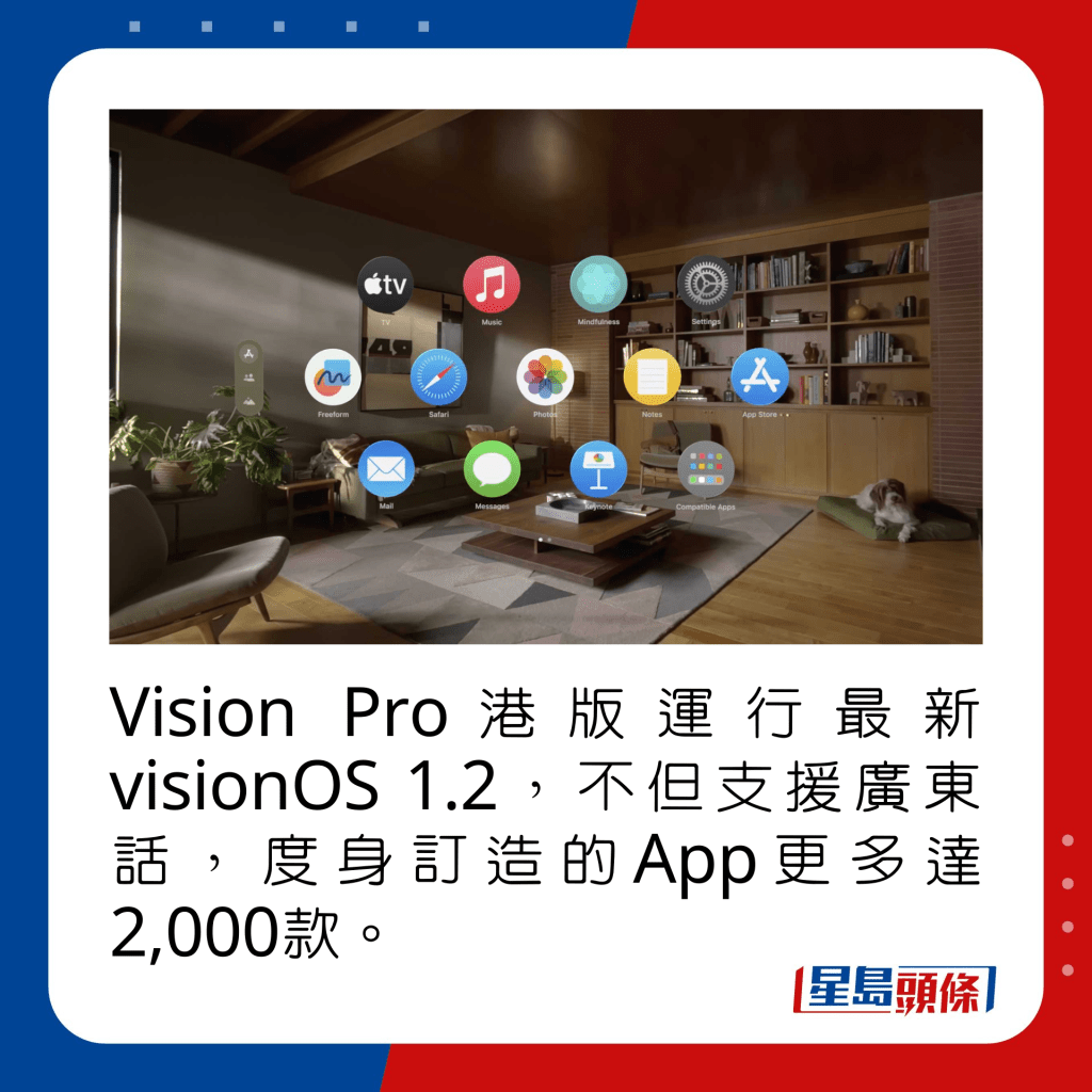 ▲Vision Pro港版运行最新visionOS 1.2,不但支持广东话,度身订造的App更多