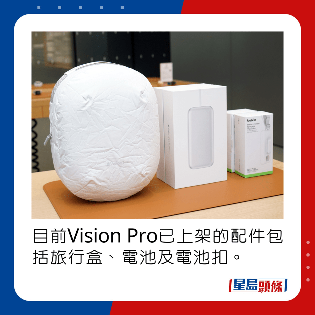 ▲目前Vision Pro已上架的配件包括旅行盒、电池及电池扣。