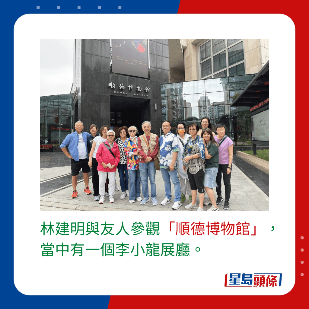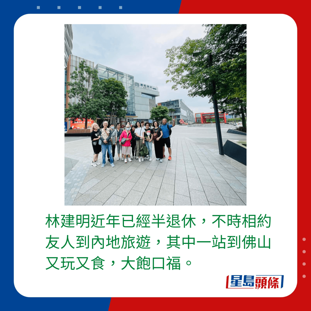 林建明在FB分享到顺德旅游的景片,见到她与几位好友游走佛山多个景点city walk,又到当地著名的私房菜馆开餐,虽然没有小朋友同行,但林建明与友人都有到顺德博物馆、两个主题公园组成的顺德欢乐海岸PLUS,感受一家大细的欢乐气氛 。