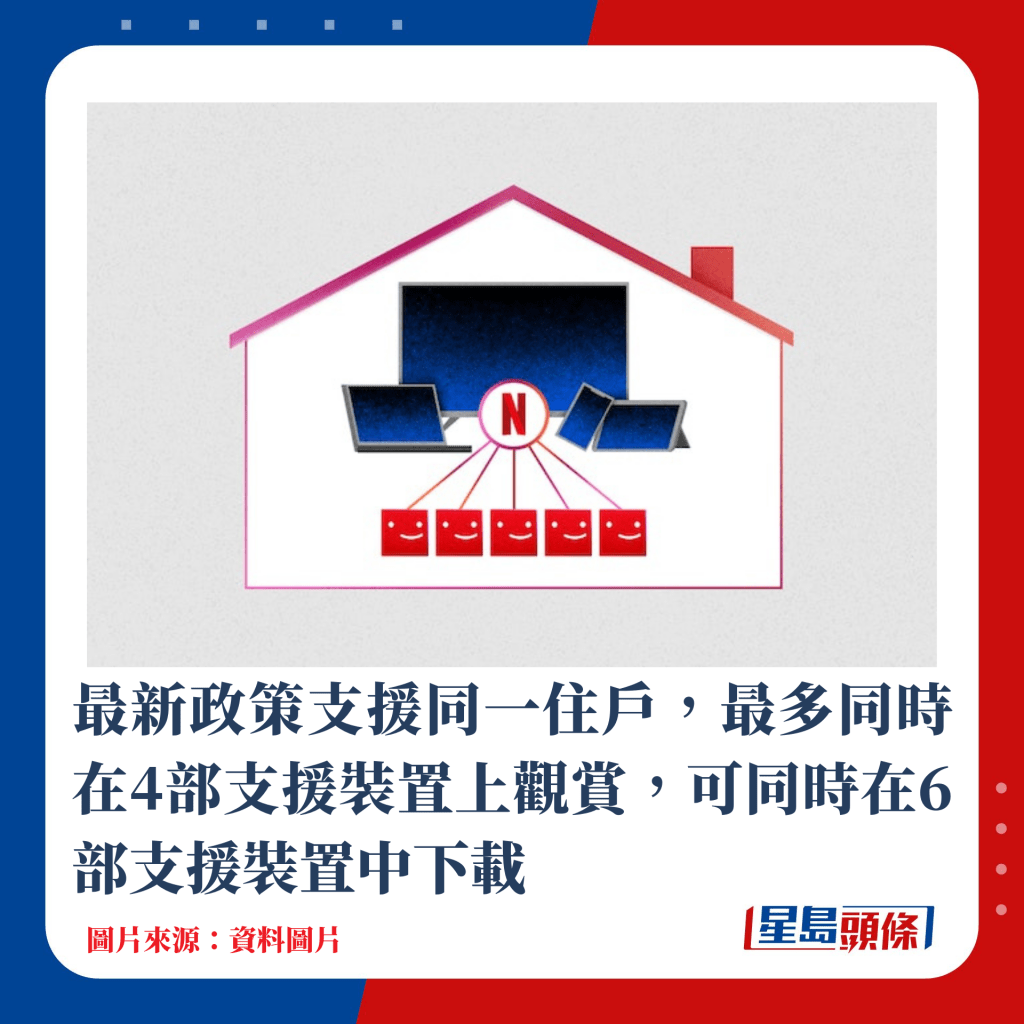 ▲最新政策支持同一住户,最多同时在4部支持装置上观赏,可同时在6部支持装置中下载