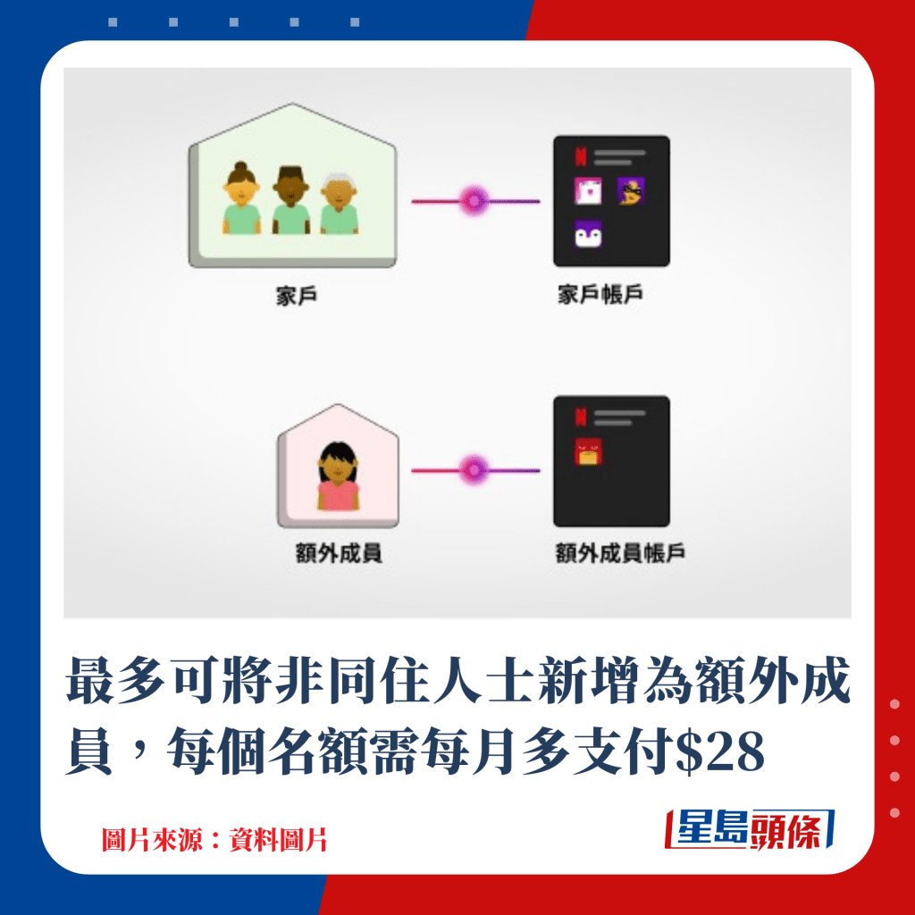 ▲最多可将非同住人士新增为额外成员,每个名额需每月多支付$28