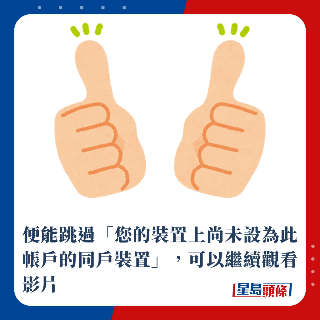 ▲便能跳过“您的设备上尚未设为此帐户的同户设备”,可以继续观看影片