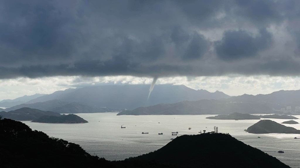 香港今日(28日)天气酷热,部分地区气温上升至34度或以上,网上流出一条短片,指港岛西面交椅洲对开海面于下午近5时出现水龙卷风,整片乌云中间出现漏斗一路延伸至海面缓缓移动,强烈的气流刮起阵阵强风,震撼眼球。