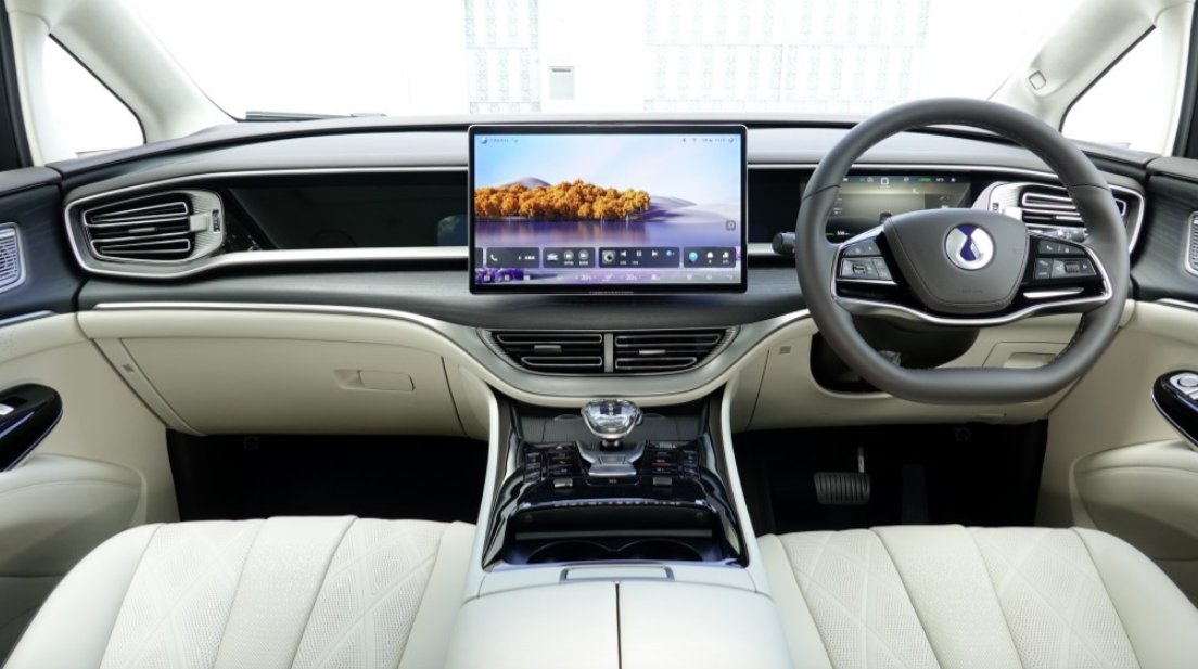 ▲Denza D9旗舰级四驱版中控台15.6吋悬浮式触屏附多媒体及语音导航。